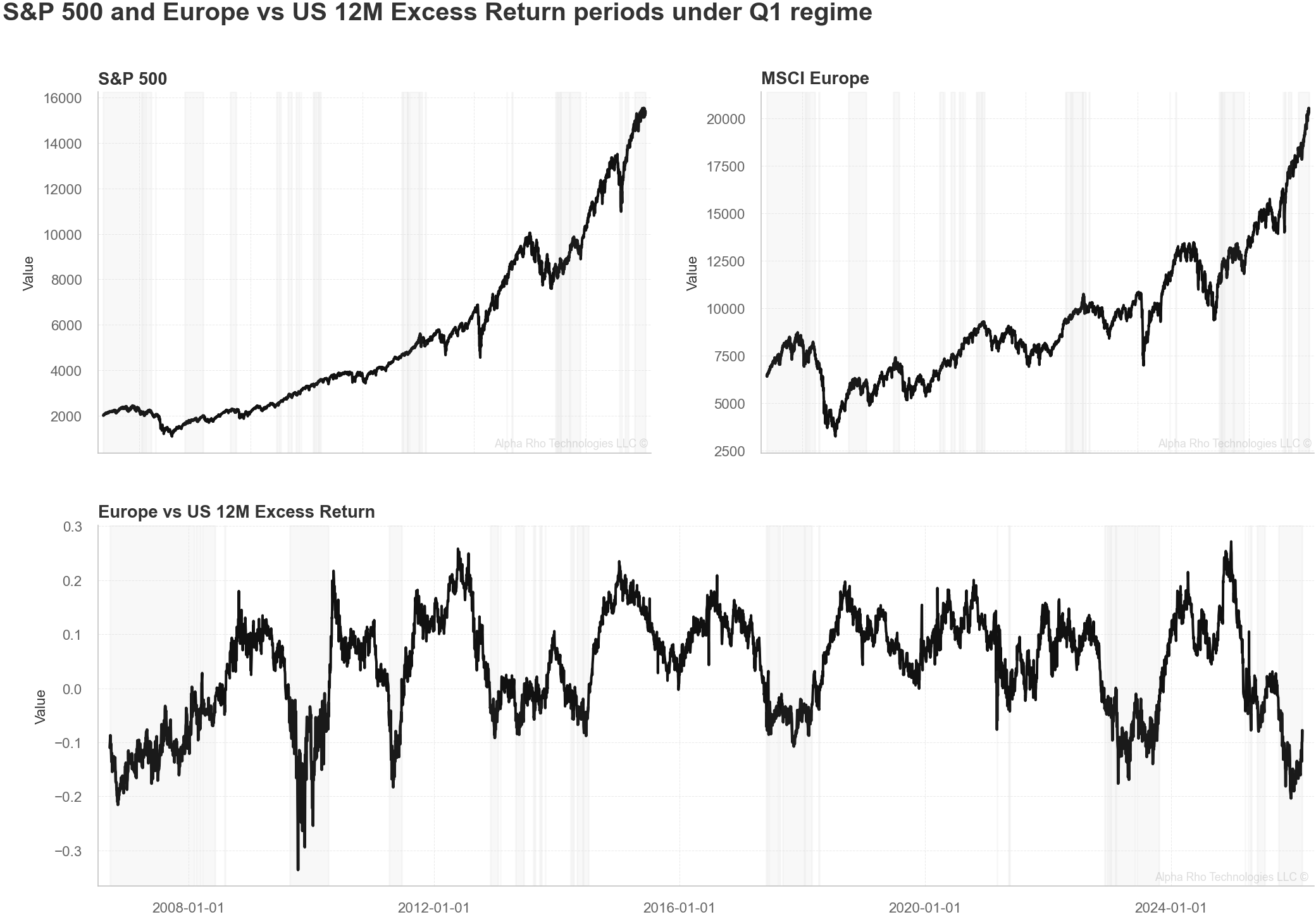 Long-horizon reversion is historically consistent. Q1 entry points produced 32.79 percentage points of S&P outperformance over 3 years and 52.94 percentage points over 5 years. This pattern reflects the structural alpha the US has generated since 1999—periods of European outperformance have been counter-trend moves, not regime shifts.