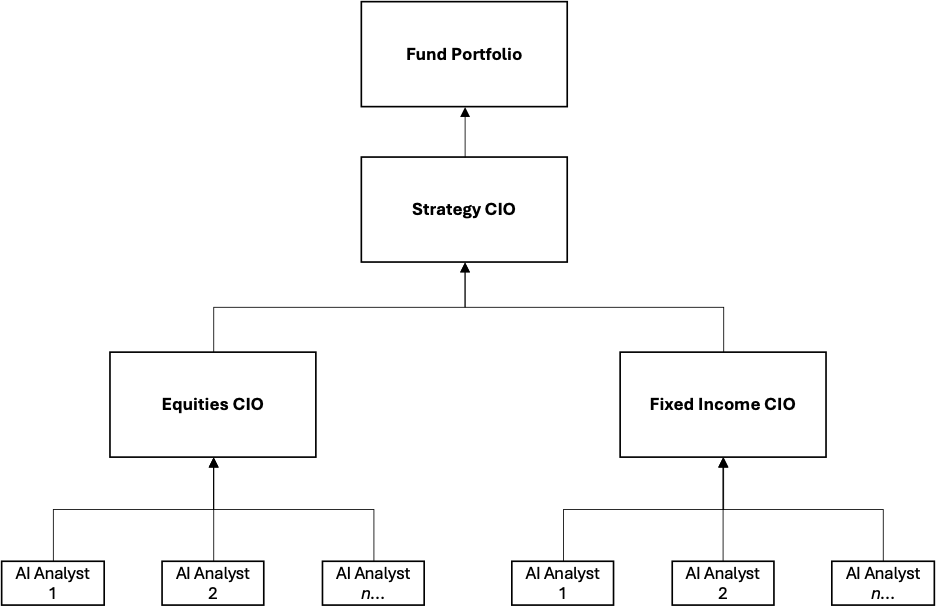 Teams of AI analysts report to an AI CIO. Each team runs an investment committee where the top-performing analysts defend their holdings against the prevailing macro environment. The CIO listens, challenges assumptions, and issues a detailed report explaining the rationale behind the team’s consensus allocation.