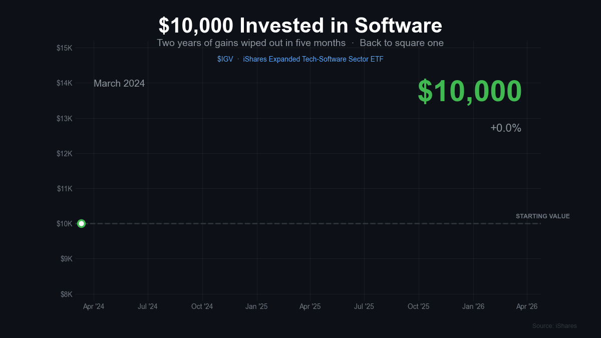 The market is not pricing a recession. It is not pricing NRR breaching 100%. It is pricing a slower, more capital-efficient software sector—one where AI is a headwind to seat-based revenue, not a tailwind to growth.